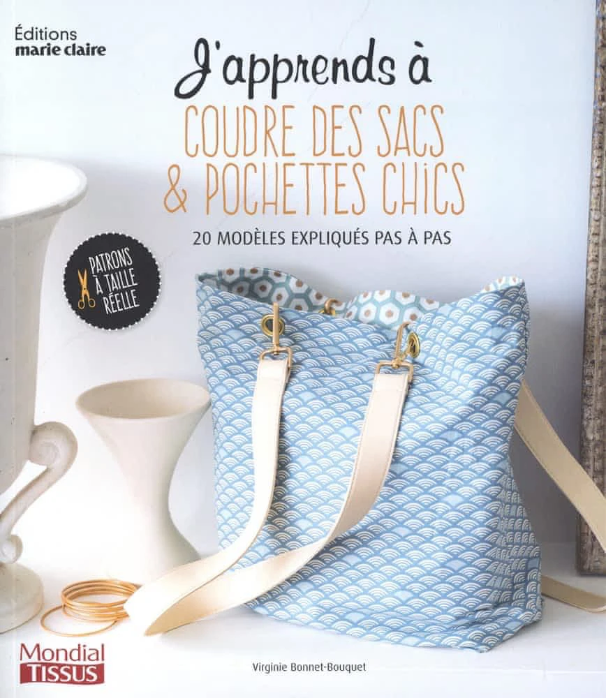 Un livre 100 % pratique et stylé ! Ici, je vous accompagne avec ce livre couture sac contenant 20 modèles de sacs et pochettes, du plus simple au plus élaboré.