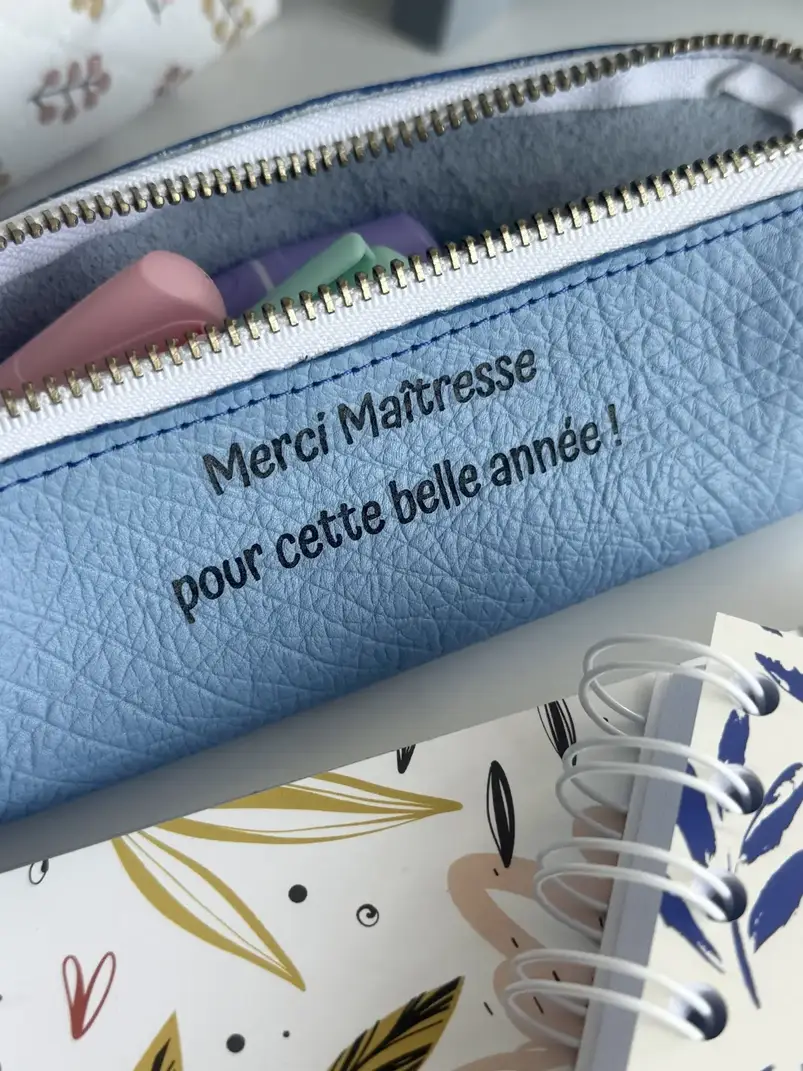 Nous savons que chaque maître et maîtresse est unique, c’est pourquoi nos accessoires sont disponibles dans un large éventail de couleurs vibrantes et élégantes. Tu trouveras forcément la teinte qui correspondra parfaitement à leur style. Mais ce qui rend ce cadeau vraiment spécial, c’est la possibilité de le personnaliser. Imagine offrir une trousse ou un porte-cartes gravé d’un message significatif comme « Merci Maîtresse », « Merci Maître », ou même l’année scolaire « Année 2024/2025 » ou tout autre message pour un souvenir intemporel.