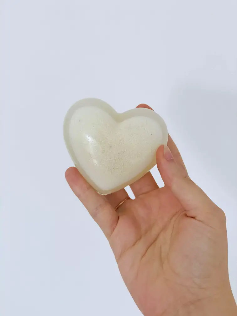 Posé avec grâce sur une étagère, ce cœur devient une invitation à la contemplation, une caresse pour les yeux et pour l’âme. Ou bien, utilisé comme presse-papier, il devient gardien de mots, de pensées, de rêves.