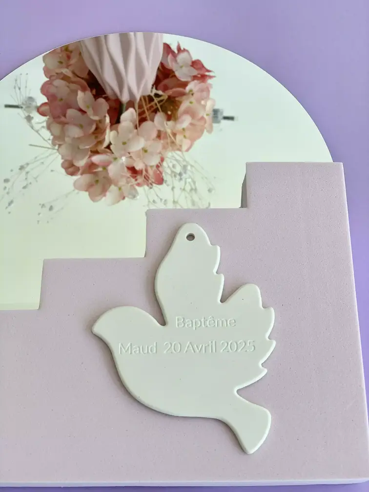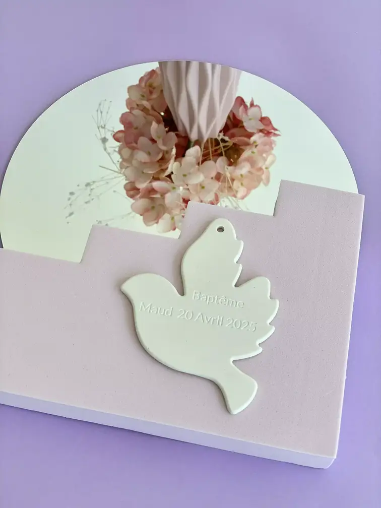 Cette colombe de baptême est un cadeau parfait pour qui souhaitent offrir un symbole de foi. Ou même, pour les parrains et marraines qui veulent marquer cet événement spécial.