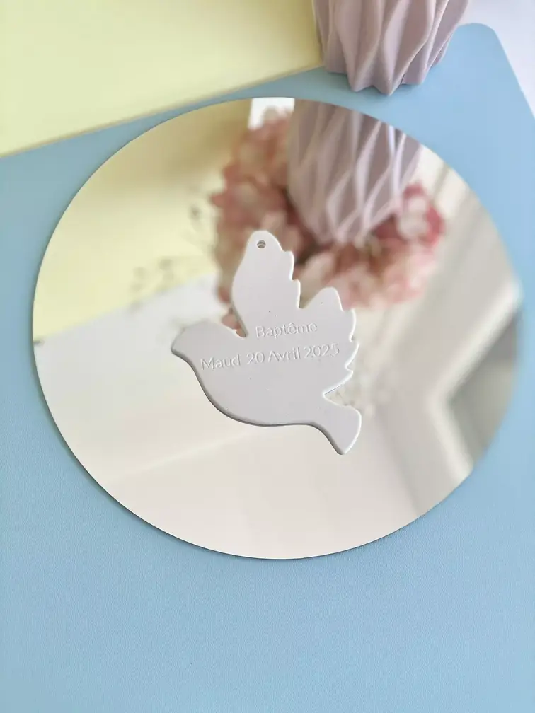Colombe de baptême personnalisée gravée