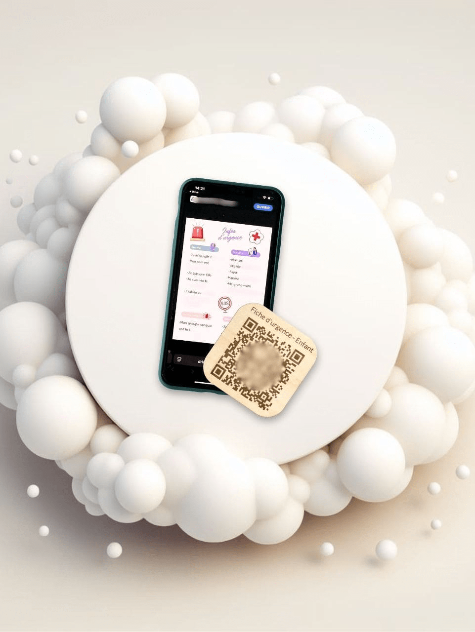 Cette plaque se fixe facilement sur le siège auto. En cas d’urgence, les secouristes n’ont qu’à scanner le code QR pour accéder instantanément à une fiche d’information cruciale. Cette fiche d’urgence numérique contient des données essentielles sur ton enfant : son nom et prénom, tes contacts d’urgence, son groupe sanguin, ses éventuelles allergies et tout autre besoin médical spécifique.