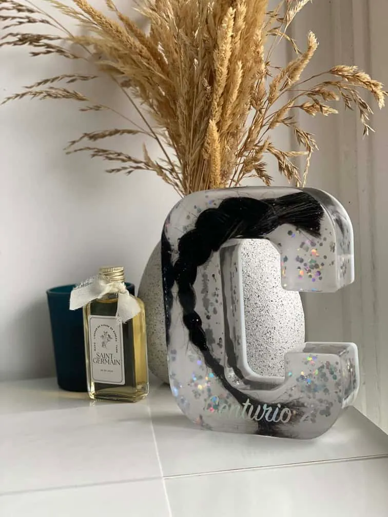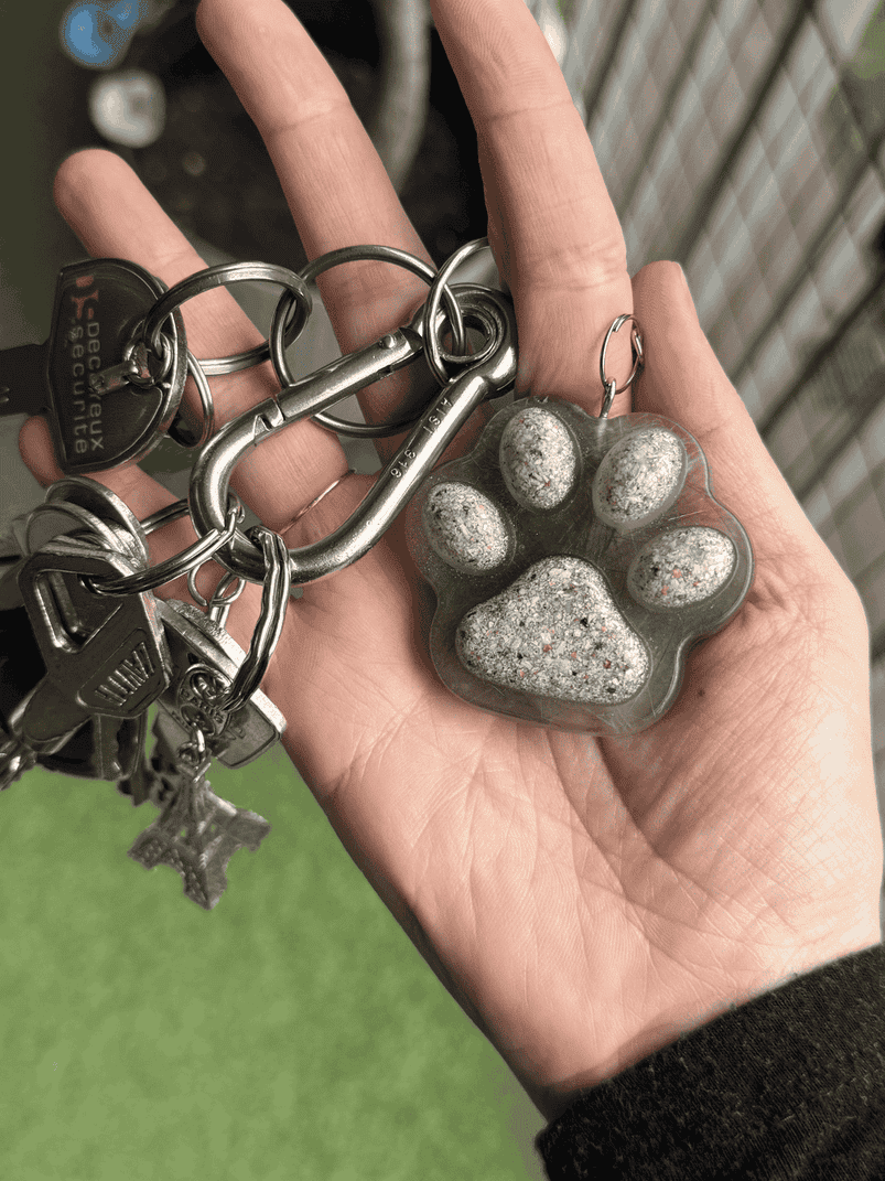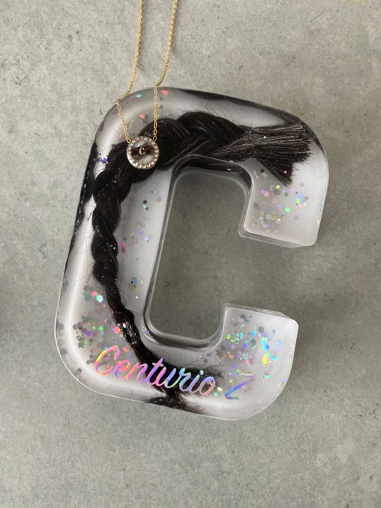 De même, chaque pièce est une lettre en résine personnalisée, conçue pour encapsuler les petits trésors qui te rappellent ton animal. Tu as la possibilité d’y intégrer ses poils soyeux, une griffe précieuse, une de ses moustaches, ses cendres, des photos miniatures ou même un petit accessoire qui lui appartenait.