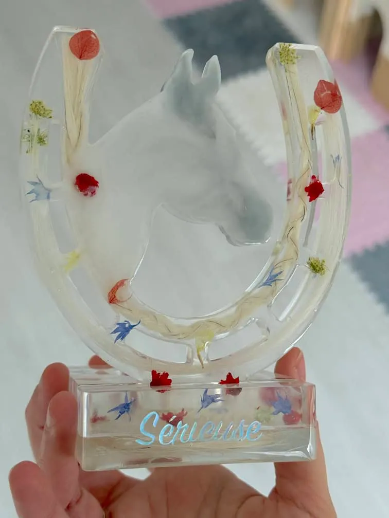 - Personnalise : Sélectionne les objets à intégrer et les couleurs de la résine et me les envoyer.